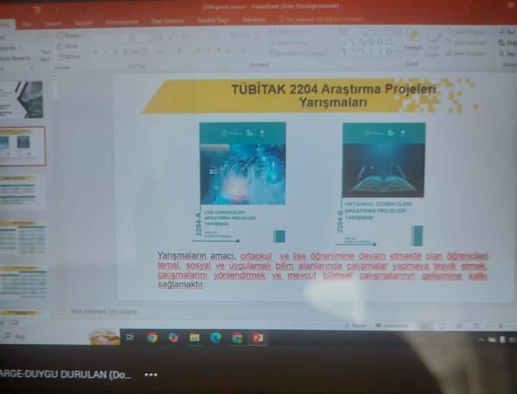 Toplantıda, öğrencilere yönelik TÜBİTAK 2204B 2204A 4006 AIB proje yarışmaları ve TEKNOFEST teknoloji yarışmaları hakkında detaylı bilgiler paylaşıldı. Proje hazırlama süreci, başvuru aşamaları ve dikkat edilmesi gereken noktalar üzerinde duruldu. Ayrıca geçmiş yıllarda başarı elde eden projelerden örnekler verildi.